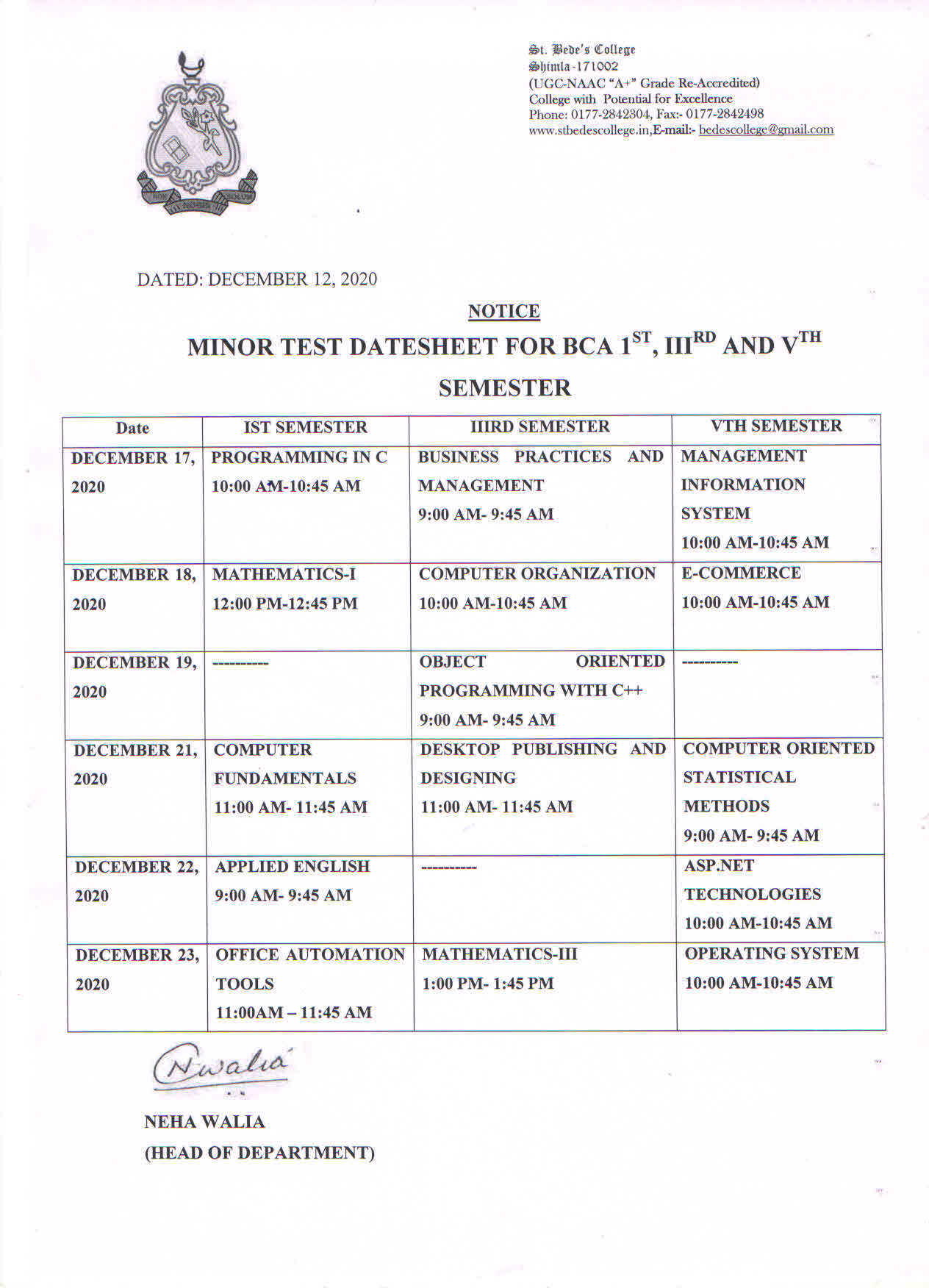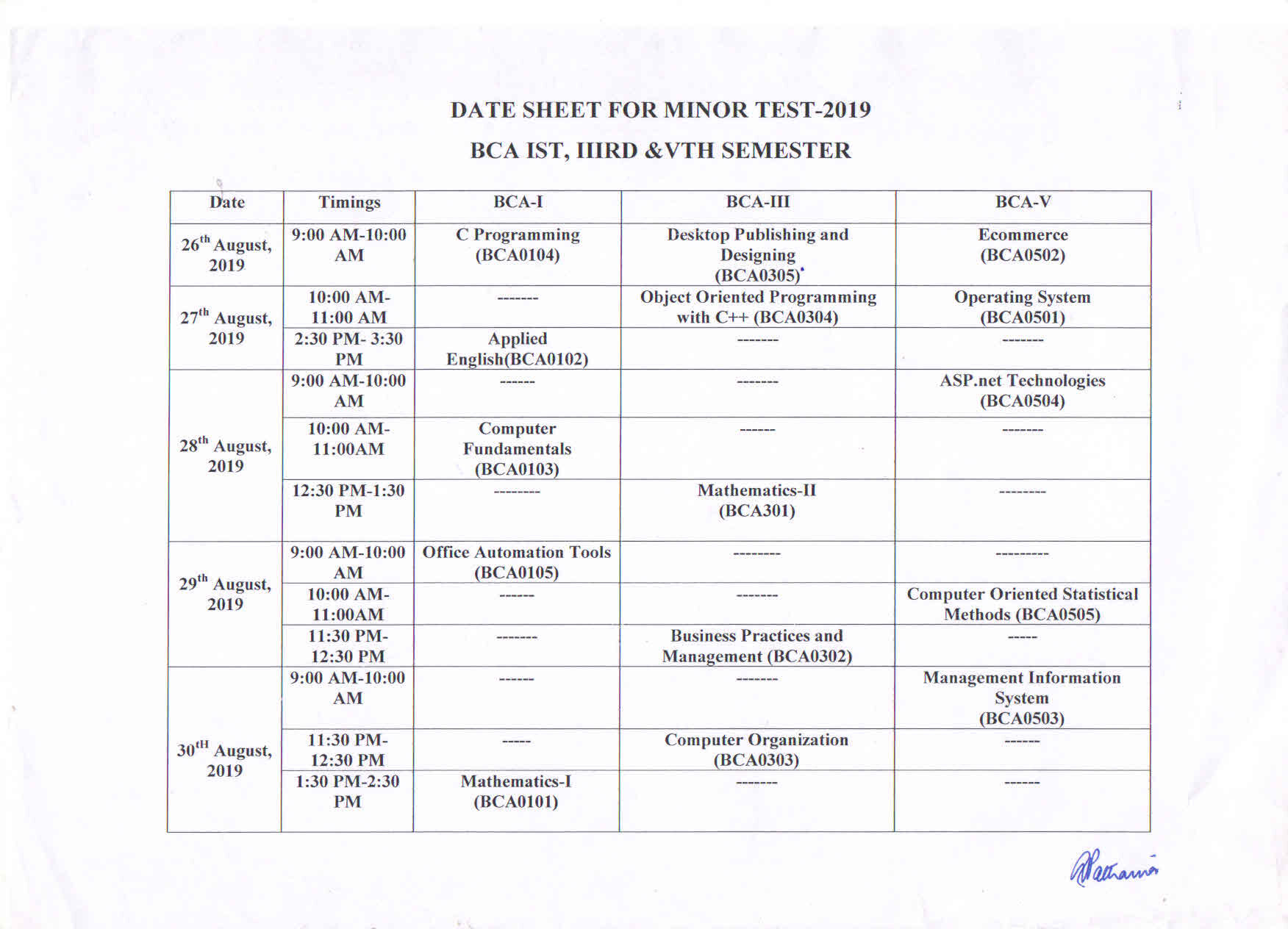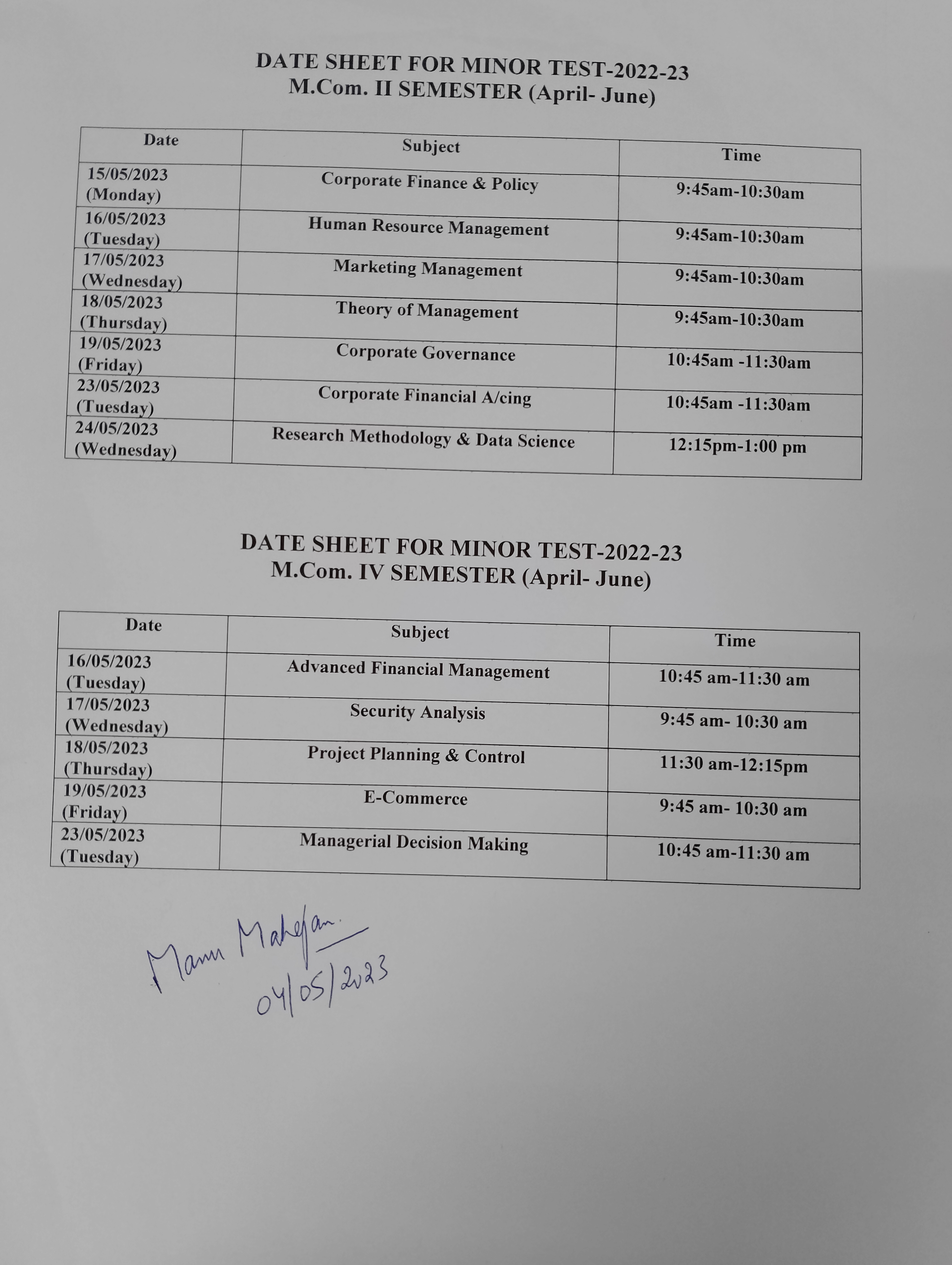 The committee also prepares date-sheets for annual practical examination and internal minor tests.