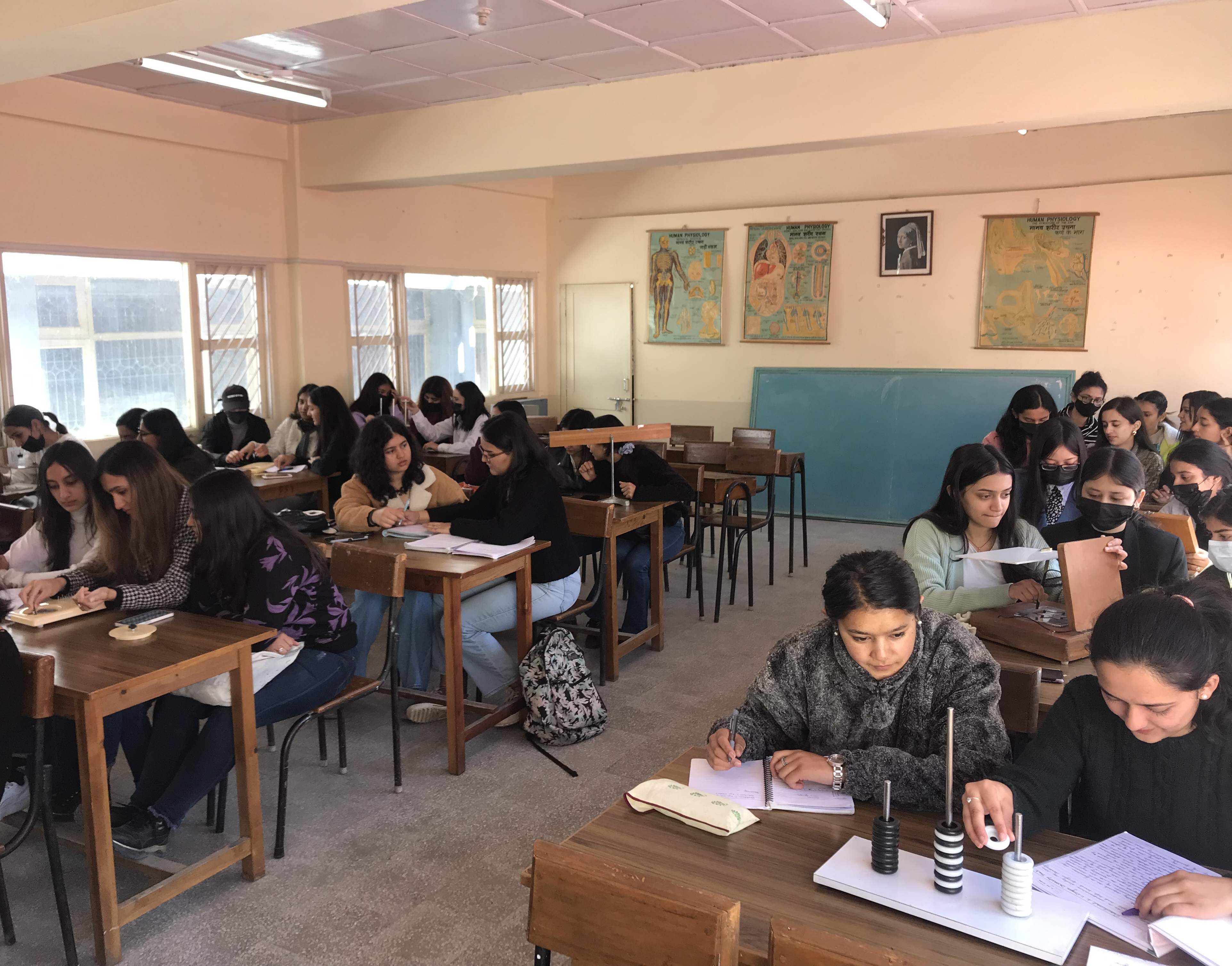 College enables students with first-class experiences on infrastructure and technology that align and expose students to constantly changing advancements in the field of geography. Geography Lab in the College was established in 2019 and is equipped with all basic and modern equipments such as Smart Board, Computers, Electric globes, GPS, Anemometer, models, charts and maps etc