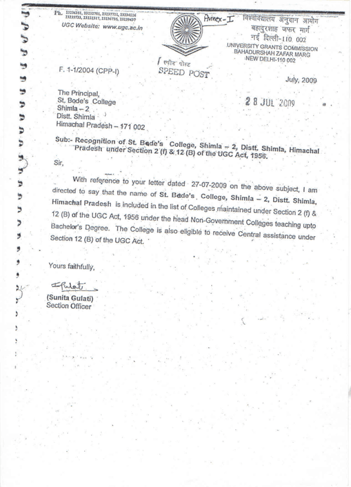 Letter of Recognition-UGC 2 (F) & 12 (B)
