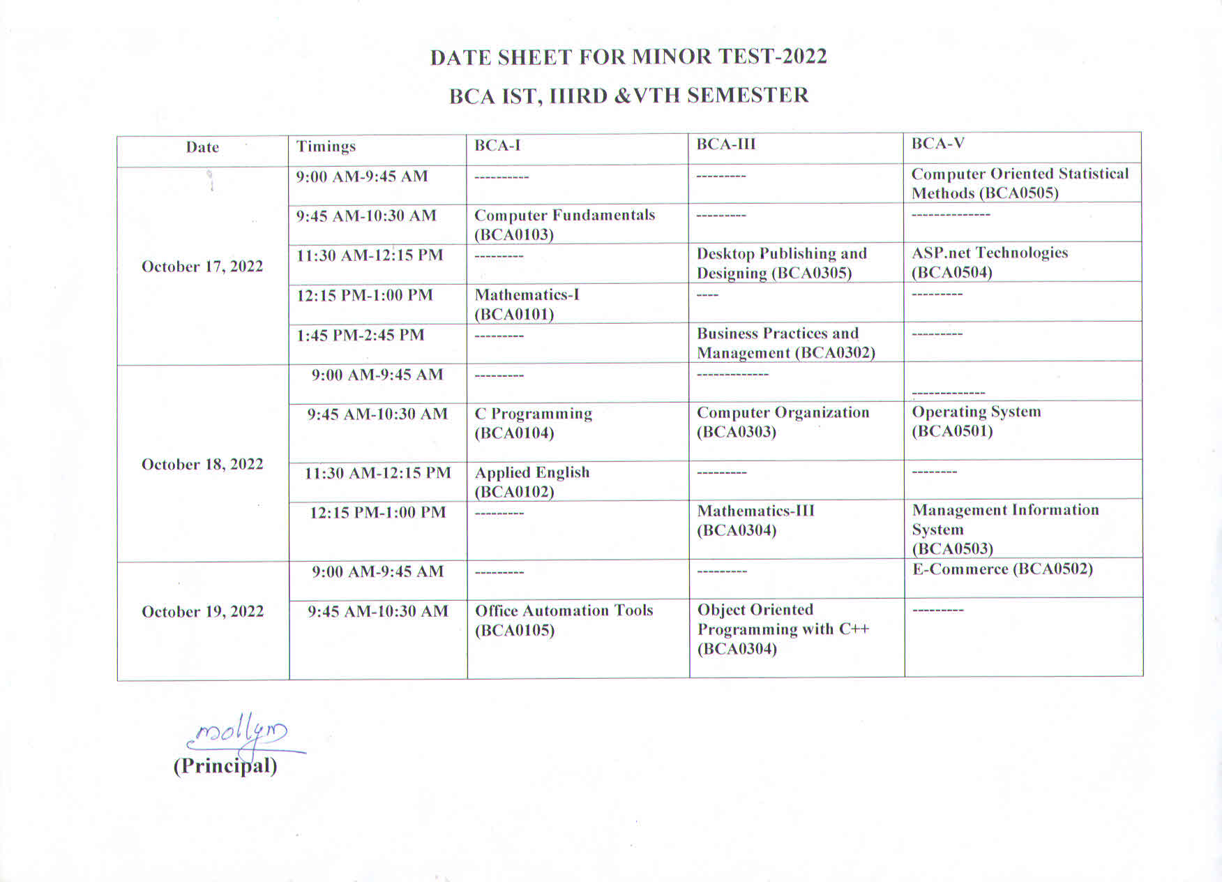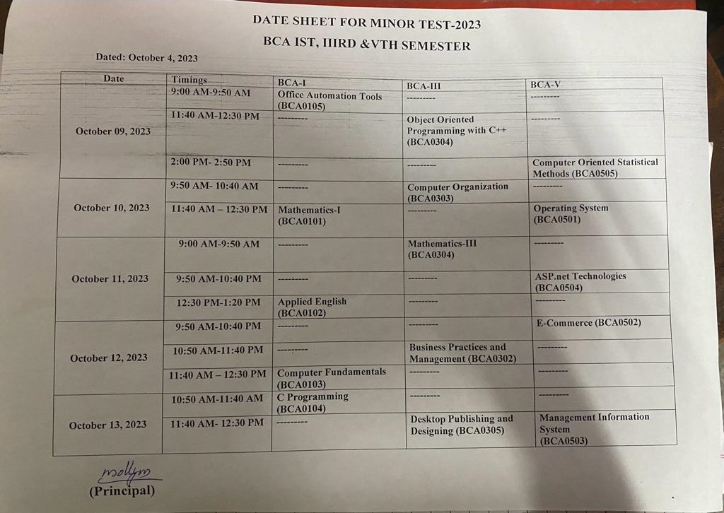 The committee also prepares date-sheets for annual practical examination and internal minor tests.