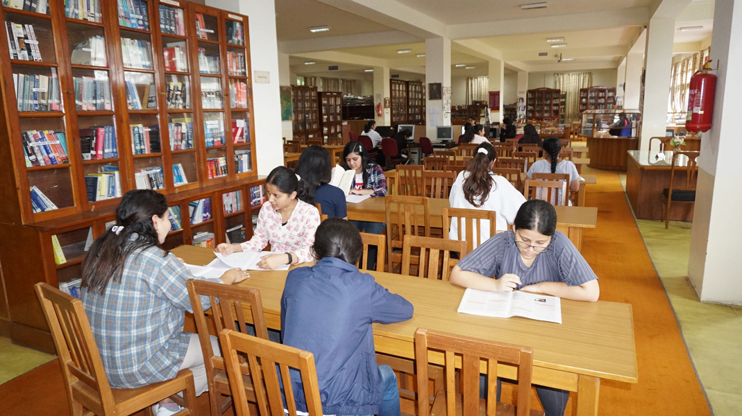 College Library is well established, well ventilated, lighted, automated, and accomplished with all new technologies and modern facilities. It has two floors. Central Library– 1013.65 sq. meters. The first floor has Reference Section, Periodical Section, Circulation, IT zone; Wi-Fi enabled reading corners, special reading sections for staff and students, lounge area for reading Journals, Magazines Newspapers and easy room for relaxed reading. Computers are provided in the library for accessing the internet, digital library and library.